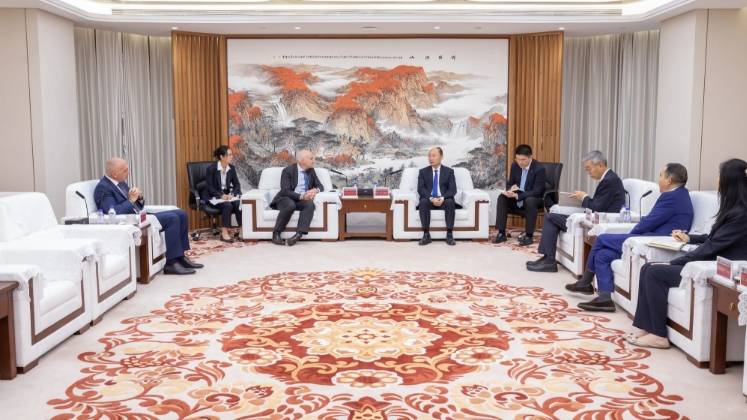 7月29日,中国化学董事长莫鼎革在集团公司总部会见纳米比亚海芬氢能公司首席执行官马尔科・拉菲内蒂,双方就深化在纳米比亚绿色能源合作进行深入交流。集团公司副总经理武宪功参加会谈。