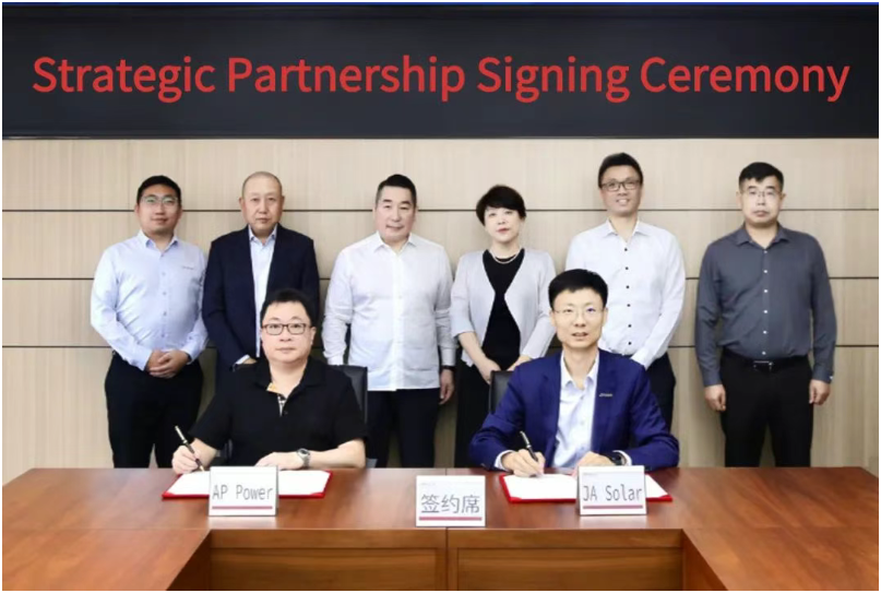 7月29日,晶澳科技与菲律宾新能源领军企业Advance Prime Power Corporation在北京正式签署战略合作备忘录。晶澳科技东亚与南太平洋区副总裁李小宾与Advance Prime Power Corporation执行董事申健分别代表双方签约。晶澳科技董事、区域经营中心副总裁兼中国区总裁靳军辉,区域经营中心总裁兼东亚与南太平洋区总裁陈永钦,Advance Prime Power Corporation董事局主席Michael Chen及董事张雷等双方领导共同出席仪式并见签。