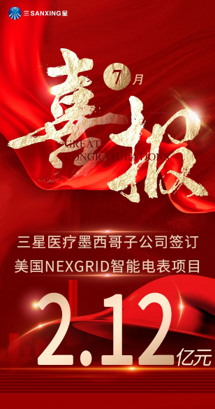三星医疗7月30日晚间公告,公司下属控股墨西哥子公司南森墨西哥中标美国Nexgrid智能电表框架项目,合同金额总计2955.5万美元,约合2.12亿人民币,占公司2024年度经审计营业收入的1.45%。