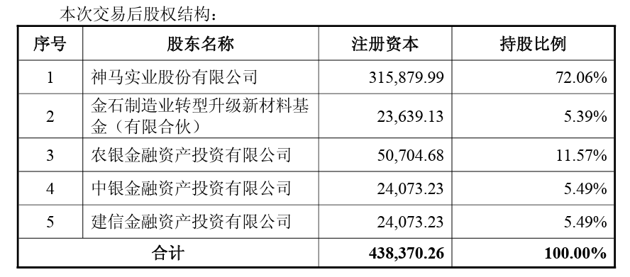 2021年12月,神马股份公告,公司全资子公司尼龙化工拟以非公开协议增资方式引入投资者,本次增资方为金石制造业转型升级新材料基金(有限合伙),增资金额为12亿元。