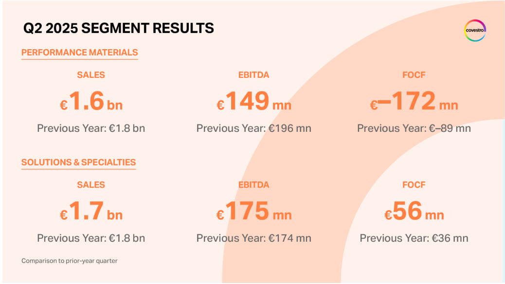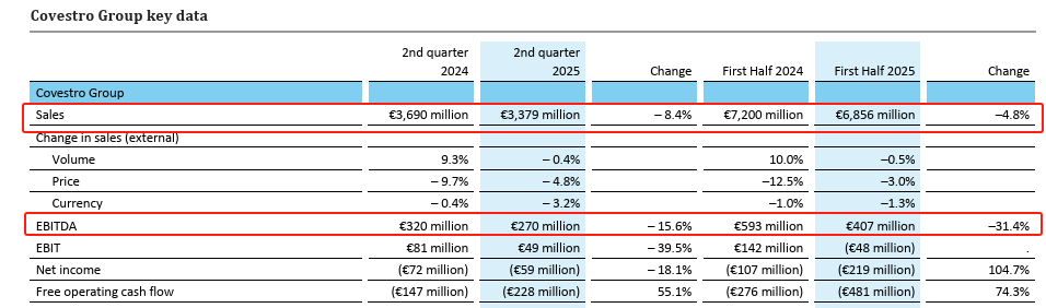 7月31日,科思创发布2025年第二季度业绩和上半年业绩报告。