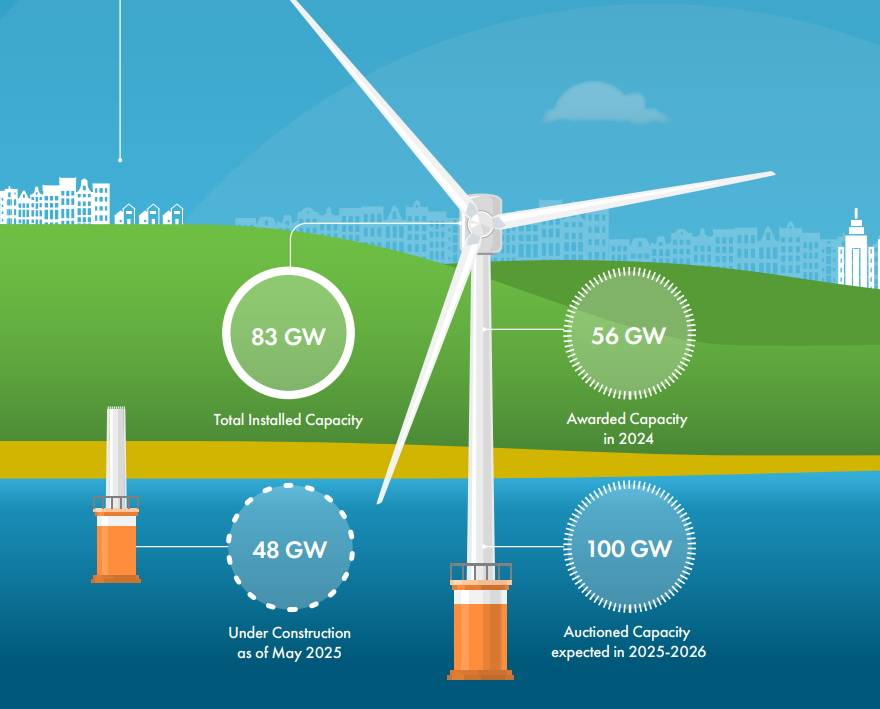 全球风能理事会(GWEC)最新报告显示,截至2024年5月,全球海上风电累计装机容量已达83吉瓦,目前在建项目规模为48吉瓦。2024年全球新增装机8吉瓦,同比下降26%,但仍创下历史第四高的年度新增纪录。