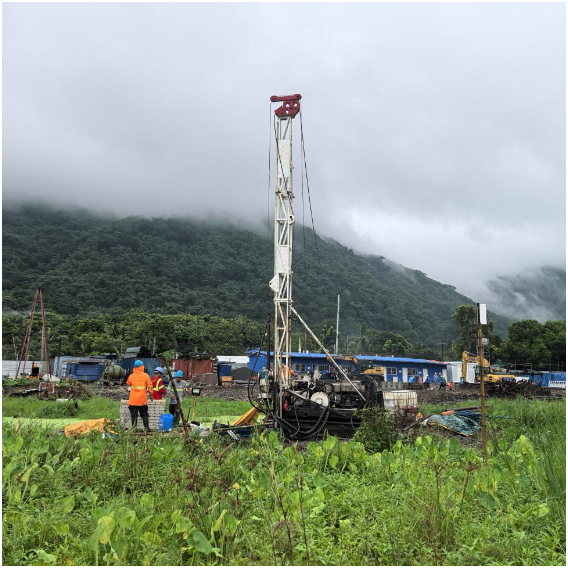 菲律宾属热带季风气候,目前天气炎热、风雨交加、台风频发。项目组不顾恶劣气候,在菲律宾内湖省推进帕基尔抽水蓄能水电站工程下库钻探。项目所在地地层复杂,含冲洪积淤泥、粘土、粉土等,其中孔深60~90米段为碎石土层。场区地下水丰富,钻孔涌水水头高达3米,需采用多层套管加跟管技术钻进。加之台风过境,湖水水位暴涨,钻机被淹,项目组面临高温、停水电和异国环境复杂等挑战。为保证工期和勘察数据质量,项目组不分昼夜,通电即开工,通过架设探照灯、搭设防雨篷布、配备雨衣水鞋等措施,确保安全、按期施工。目前,该项目正抓紧推进外业勘察,预计9月底完工。