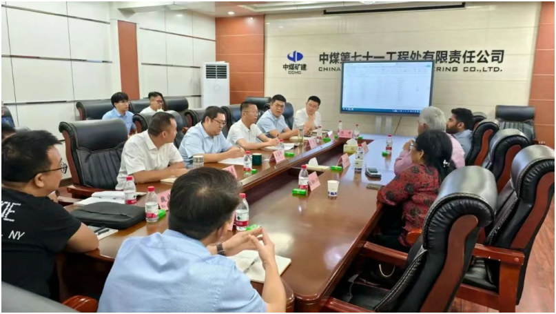 7月30日下午,中煤第七十一工程处有限责任公司负责人满东辉与印度Grossmacht Engineers Pvt Ltd. (GEPL) 公司董事长T.M Sreenivas一行开展座谈交流。