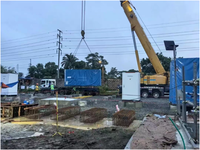 8月6日,中国能建广西工程局承建的菲律宾Bay储能项目正式开始PCS舱吊装工作。