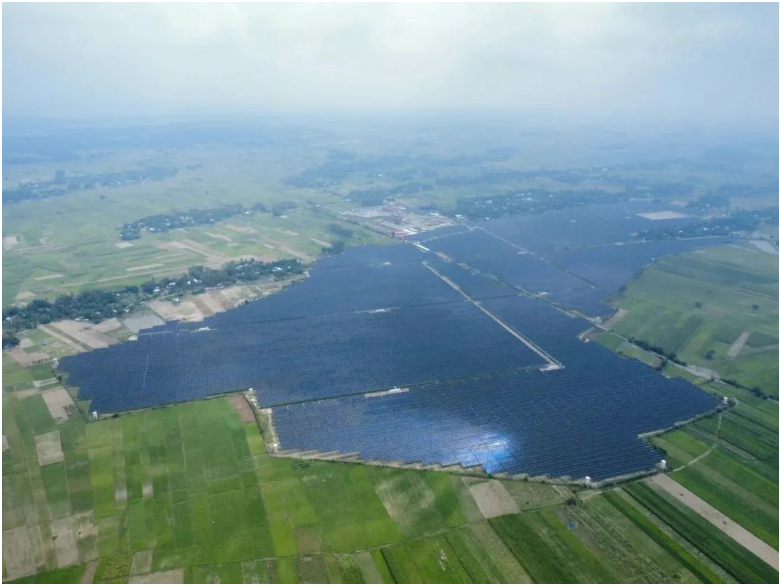 项目位于孟加拉国北部拉杰沙希区,博多河(恒河)下游河道附近,占地面积约195英亩。项目直流侧装机容量约79兆瓦峰,交流侧装机容量72.6兆瓦,新建一座132千伏升压站,两回132千伏送出线路变电站。