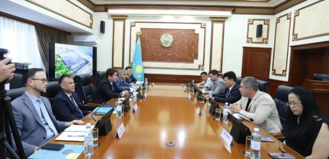8月13日,哈萨克斯坦曼格斯套州州长努尔达乌列特·科伊勒拜会见了中国甘肃渔乐鲟鱼生态科技有限公司代表。