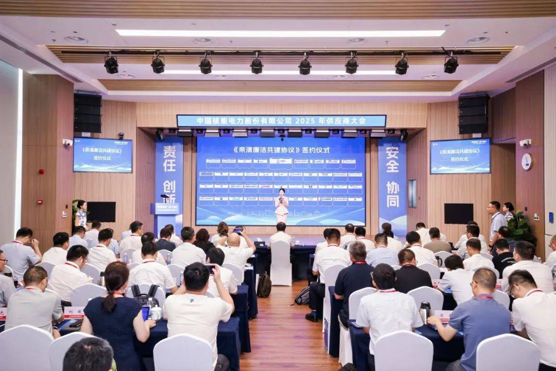 8月15日,中国核电在杭州召开2025年供应商大会,作《以亲清生态建设赋能产供链高质量发展,携手践行强核报国》的主旨报告,与合作伙伴代表共同签署《亲清廉洁共建协议》,郑重倡议产供链(即“产业链供应链”简称)合作伙伴共同构建“亲而有度 清而有为”的合作关系,以“亲清”护航核电产供链高质量发展。
