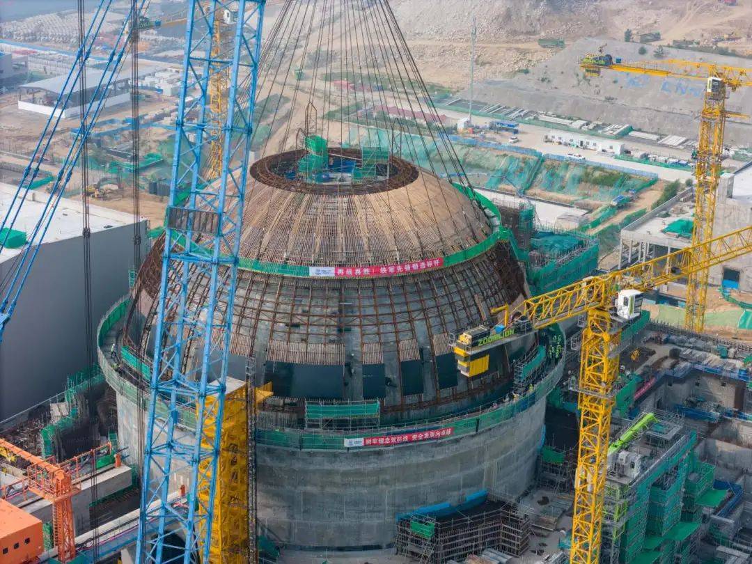 从第一罐混凝土浇筑(FCD)奠定基石,到关键构筑物拔地而起,再到百吨级穹顶模块精准吊装,项目团队匠心筑梦,克服了技术复杂、工期紧张、冬季施工等重重挑战,顺利实现顶板浇筑启动,为3号机组穹顶结构最终封顶奠定了坚实基础。