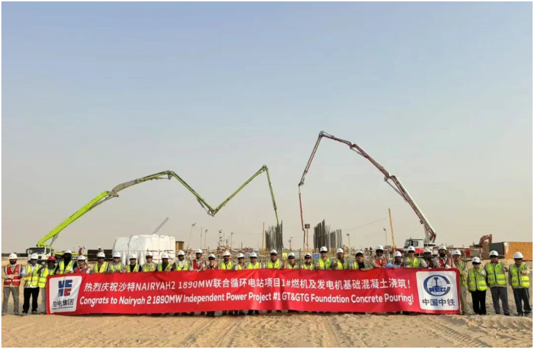 沙特当地时间8月17日,由哈电国际承建的沙特纳瑞亚2期联合循环电站项目顺利完成1号燃机及发电机基础混凝土浇筑,这是继8月11日1号余热锅炉基础混凝土浇筑后完成的又一关键土建节点,标志着项目土建主体结构施工进入全面提速阶段。
