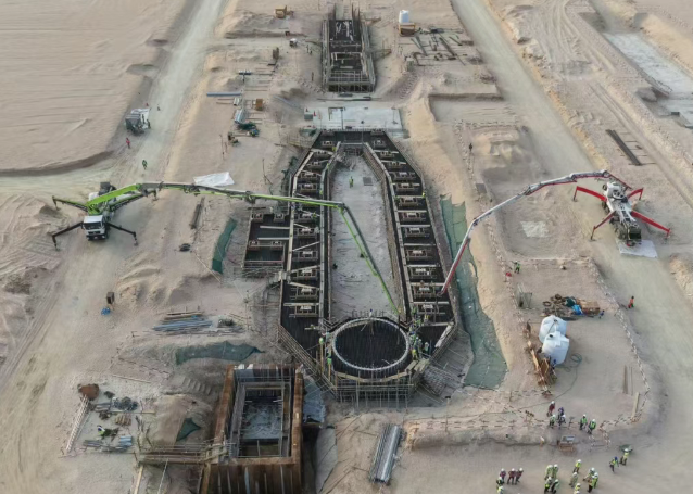 项目总包方为哈电国际&中铁四局联合体,泰建国际沙特分公司以扩大化劳务分包方式施工主机岛区域及非主机岛区域等主要标段工程。当地时间7月30日,项目1号余热锅炉排污降温池完成底部结构浇筑,这是项目第一方正式工程结构混凝土浇筑。