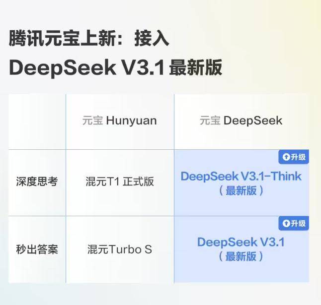 8 月 22 日消息,腾讯元宝今日宣布已正式接入 DeepSeek V3.1 最新版,电脑版、网页版抢先体验。
