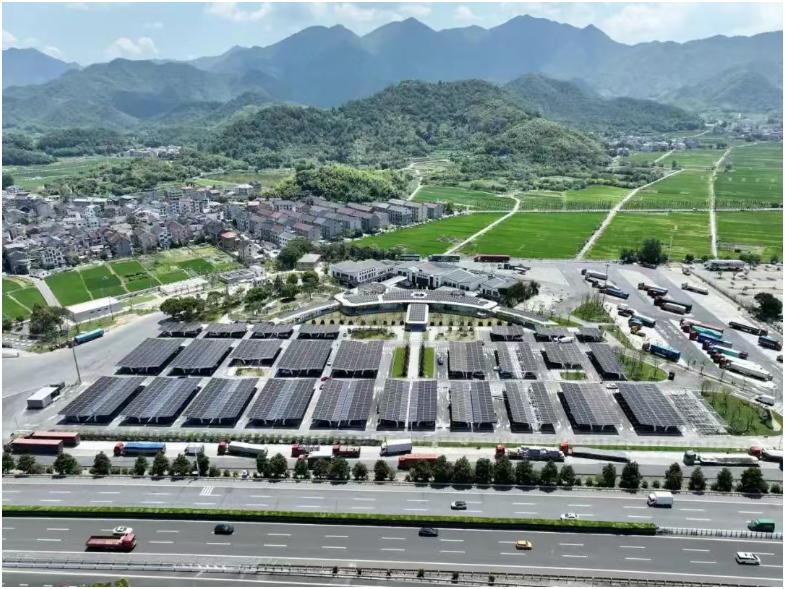 目前,杭千高速桐庐服务区(南区)铺设了装机容量为2705千瓦的光伏组件,年均发电量约263万千瓦时,所发电量全部就地消纳,减少碳排放约1472吨 ,打造了“交通+能源”融合发展新范式,为建设人与自然和谐共生的美丽城市注入强劲动能。