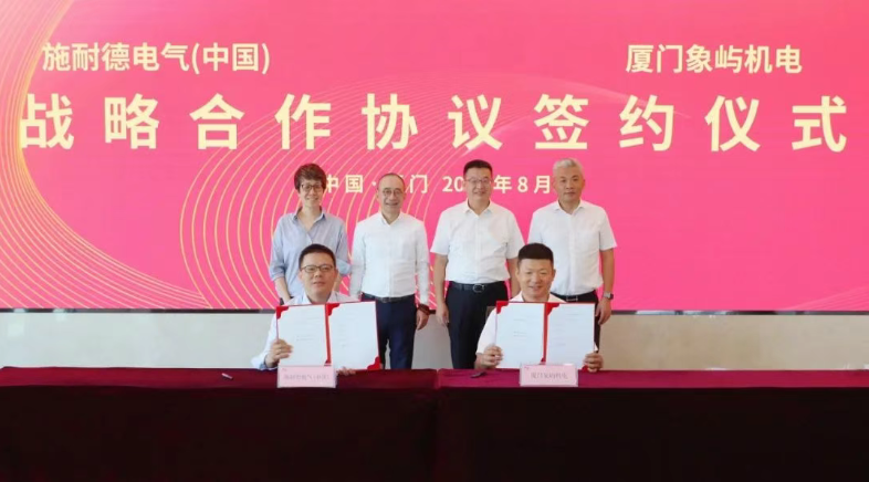 2025年8月22日,象屿产发机电供应链与施耐德电气(中国)有限公司签署战略合作协议。施耐德电气全球执行副总裁、中国区及东亚负责人尹正,中国区高级副总裁张炜,象屿集团党委副书记、总裁邓启东,象屿产发党委书记、董事长刘志宏出席并见证签约。象屿产发党委副书记、总经理刘宝全,施耐德电气中国区副总裁张连权分别代表双方签订战略合作协议。