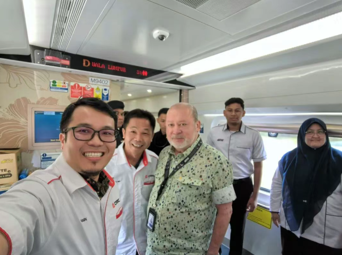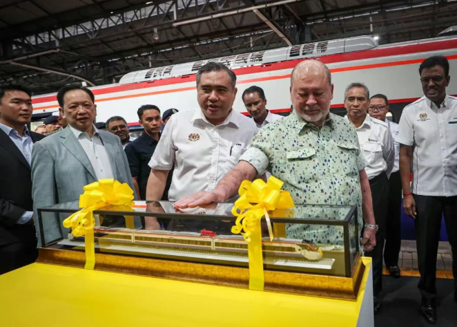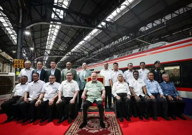 在吉隆坡车站举行的启用仪式上,马来西亚最高元首易卜拉欣与马来西亚交通部部长陆兆福、政府首席秘书及多方代表共同见证了ETS3动车组正式投入使用。随后,易卜拉欣走进驾驶室,亲自掌控列车驰骋南马铁道,为推动马来西亚轨道交通现代化建设注入新的动力。