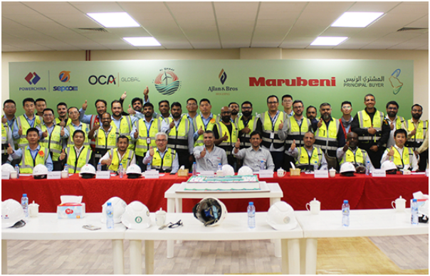 8月18日,山东电建三公司沙特阿尔加特600MW风电EPC项目举行首台风机吊装庆典,SPPC(沙特电力采购公司)项目执行总监Meshal K. Al-Maqati、丸红集团代表、阿吉兰兄弟集团代表、项目业主公司代表、运达集团代表,项目团队代表等出席庆典。