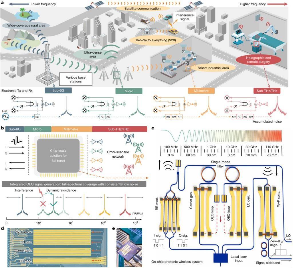 利用先进的薄膜铌酸锂光子材料,基于全新架构,中国学者研发出全球首款基于光电融合集成技术的自适应、全频段、高速无线通信芯片。8月27日,该成果刊登于国际顶级学术期刊《自然》。