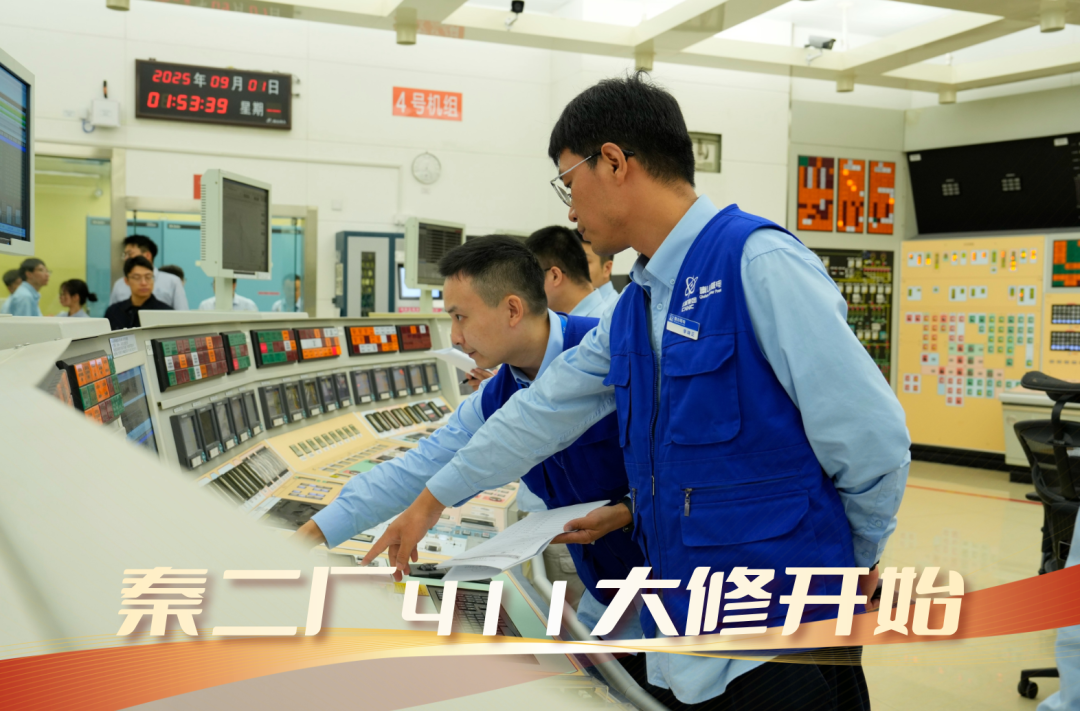 9月1日1时53分,随着当班操纵员执行汽轮发电机打闸操作,秦二厂4号机组与华东电网解列,411大修正式开始。