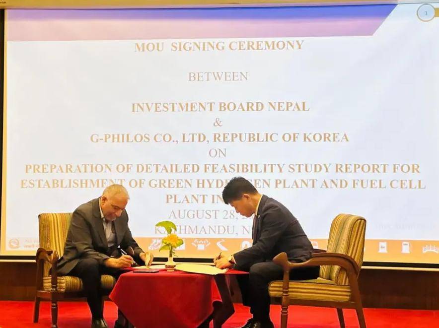 韩国企业G-Philos与尼泊尔投资委员会正式签署谅解备忘录,双方将基于公私合作模式共同推进绿色氢能及燃料电池工厂的可行性研究。该协议于周四在加德满都完成签署,标志着为期10个月的可行性研究正式启动。
