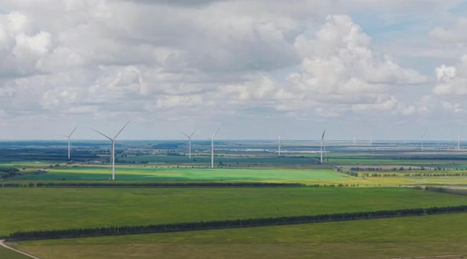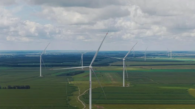 中能建松原氢能产业园(绿色氢氨醇一体化)项目采用绿电直供模式,创新应用了源网荷储精准匹配、新型储氢、多稳态柔性合成氨等一系列全球领先技术,为我国绿氢大规模商业化应用提供了可复制、可推广的样板。项目将分期建设总容量300万千瓦的新能源配套项目。金风科技为一期项目提供吉瓦时221-7.6兆瓦、吉瓦时221-7.7兆瓦共67台低温型陆上风电机组,总装机容量510兆瓦。