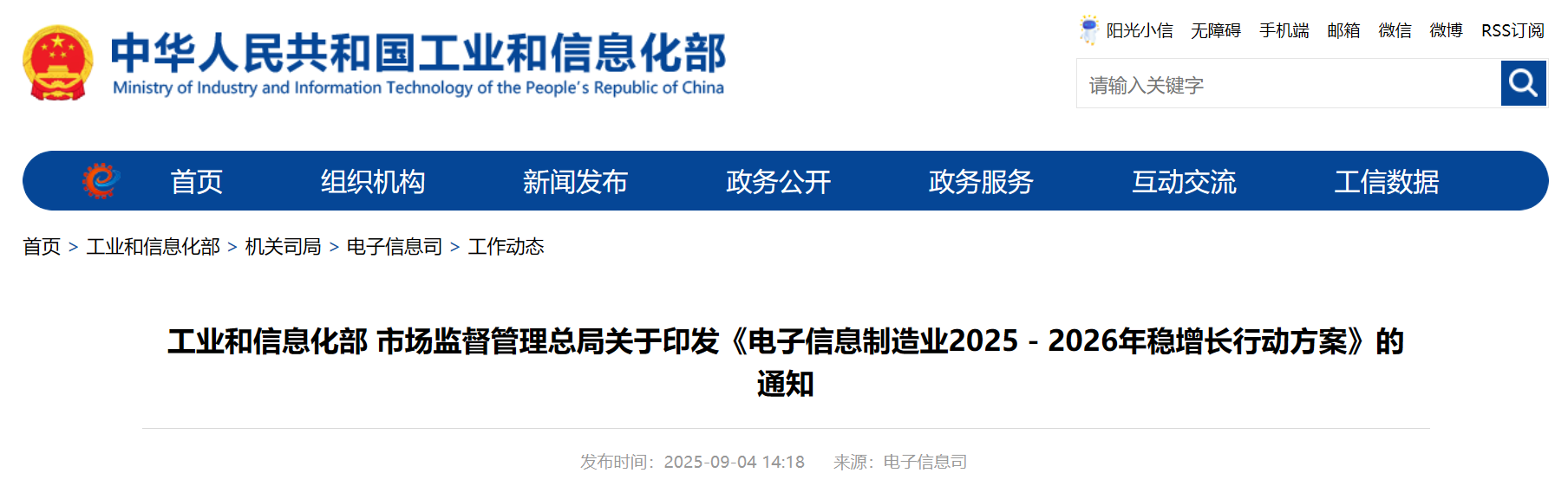 工业和信息化部 市场监督管理总局关于印发《电子信息制造业2025—2026年稳增长行动方案》的通知