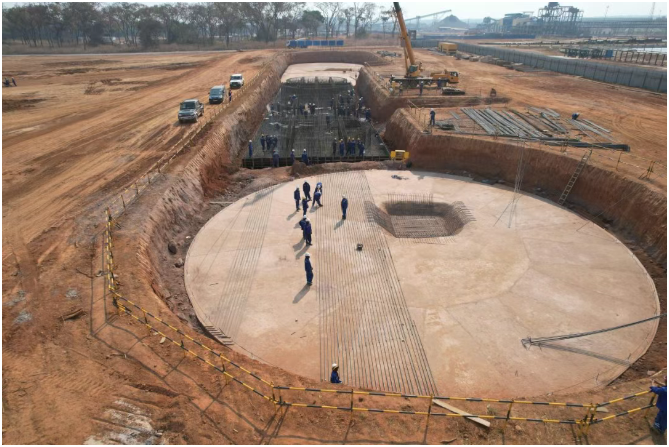 当地时间9月4日,KFM项目二期冶炼工程建设正有序推进。当日,矿浆贮存与预浸车间正式启动钢筋绑扎作业,这标志着该子项全面进入主体结构施工关键阶段,将推动项目整体进度。