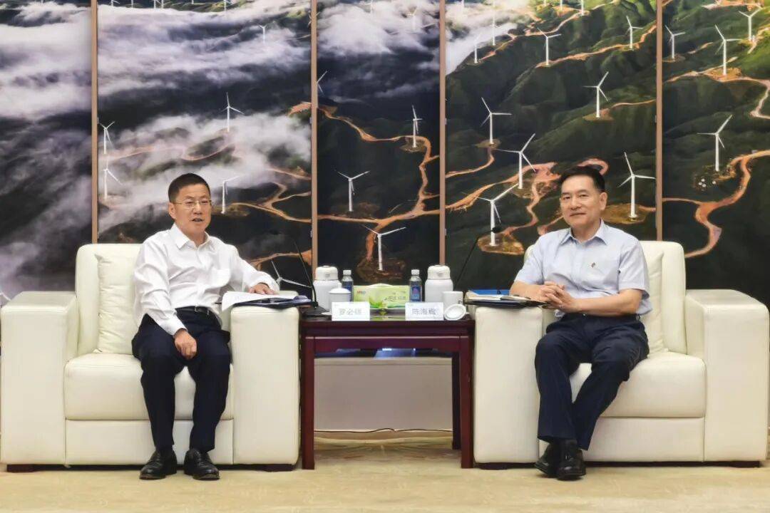 9月5日,中国能建首席科学家,中国能建中电工程党委书记、董事长,电规总院院长罗必雄在京拜访国家电投党组成员、副总经理陈海斌。双方围绕落实国家能源安全新战略,进一步深化在大通道大基地、海洋能源、核电、新一代煤电等领域的务实合作进行深入交流,并达成广泛共识。中电工程党委常委、副总经理郑良杰参加会议。
