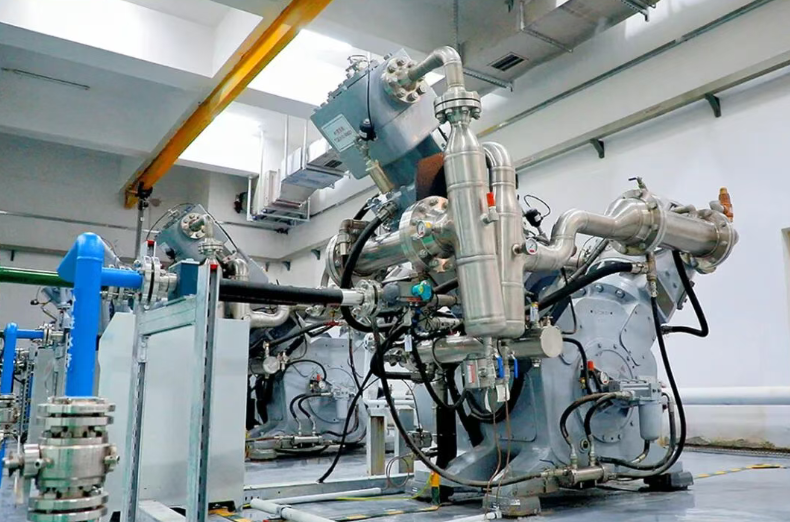 空压机是为机组启动制动、调速系统控制、调相运行等关键运行环节提供空气压力的关键装备。与进口抽蓄电站空压机采取的皮带传输驱动方式不同,该中国国产抽蓄电站空压机创新应用了“同轴直驱一体化架构”。这种省去轴承皮带的国产空压机,不仅把设备传动效率提升至100%,还大幅降低了设备维护成本。