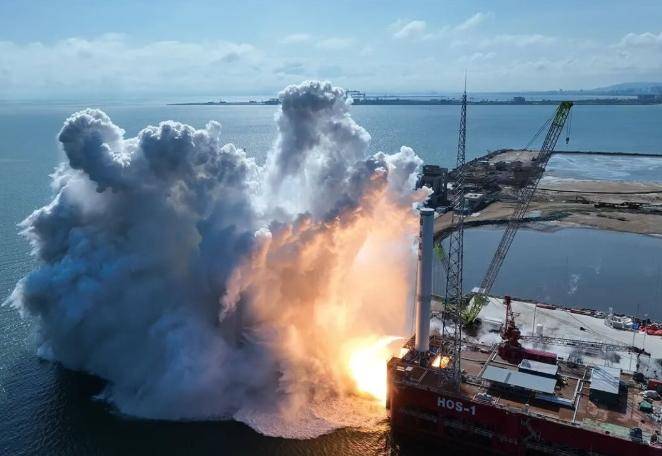 同时,本次也是中国商业航天领域首个海上热试车试验,针对海上复杂环境,验证了防风、防晃、防雷、防盐雾、防噪、环境保护及发动机火焰高温防护等多项关键技术。