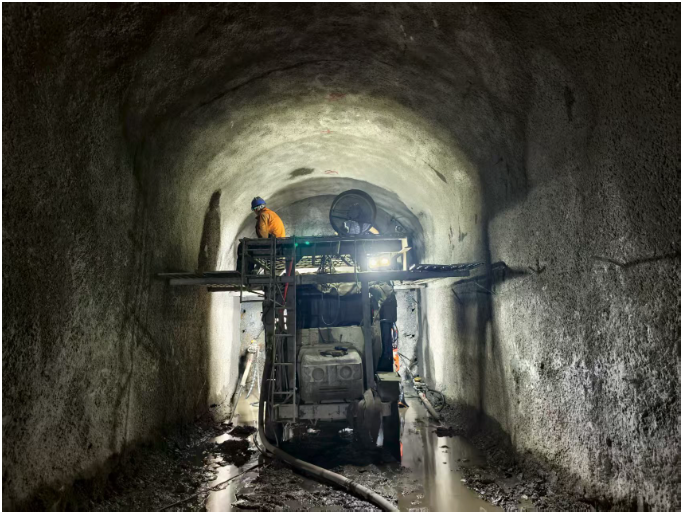 针对复杂围岩特性,项目团队开展专项爆破培训,通过加密通风设备、配备有害气体检测仪、落实围岩变形实时监测与应急储备,筑牢狭小空间安全作业防线。同时,项目团队全程跟踪锚杆、喷射混凝土强度检测,确保每道工序质量安全达标。在施工过程中,团队依托精准测量把控掘进方向,动态优化排水、支护与开挖等工序衔接,为隧洞的如期贯通奠定基础。