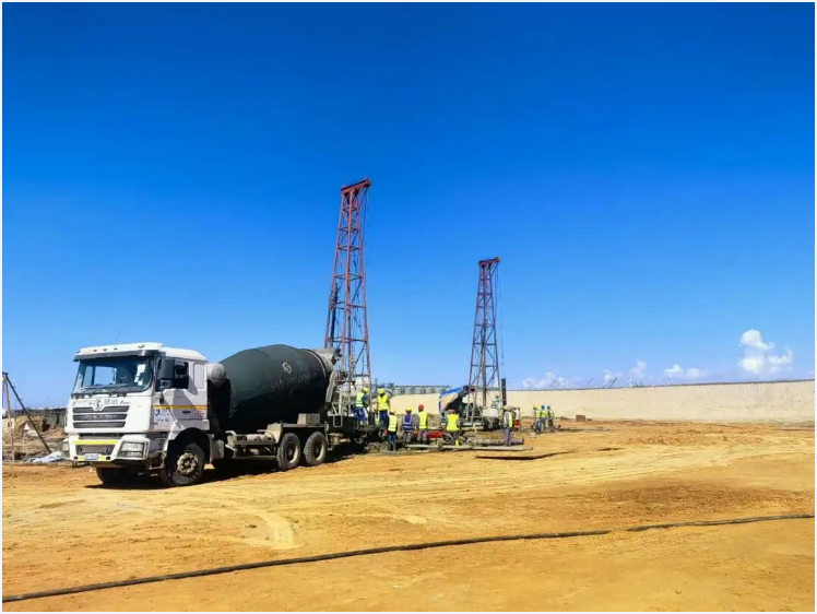 莫桑比克贝拉油库项目地处该国第二大城市贝拉,作为当地能源战略布局中的重点工程,其对基础工程的稳定性、规范性要求极为严苛。该项目需完成近千根灌注桩施工,体量大、标准高、工期紧的特点尤为突出。这不仅是对苏地公司与华建公司技术实力、项目管理能力的综合考验,更是双方践行 “企、企” 协同理念,以合作破难题、以协作促发展的重要实践战场。