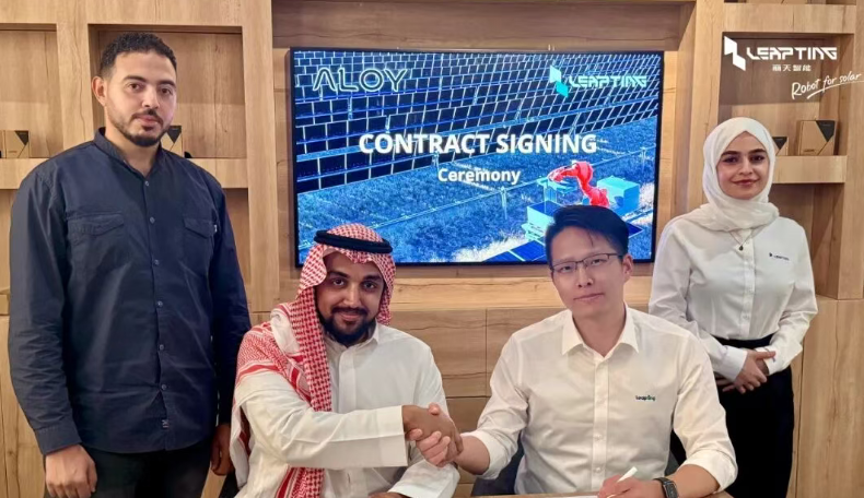 近日,LEAPTING丽天智能(以下简称:丽天智能)宣布,已与沙特地区签署一项105MW的光伏项目购电协议(PPA)。该项目将成为丽天智能在该地区实现的首个完全100%由机器人自主完成组件安装的固定倾斜式光伏项目。