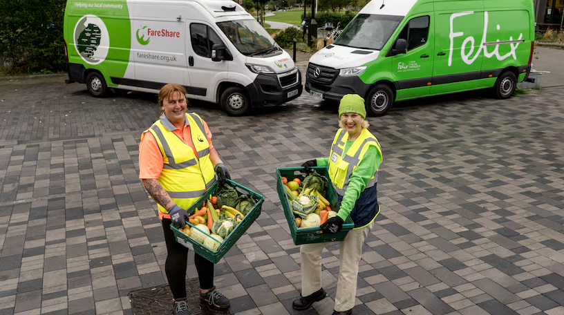 FareShare拥有30年全国影响力与战略合作伙伴关系,通过17个独立区域合作伙伴(含伦敦的Felix项目),与食品行业合作回收可食用剩余食物,送往全国8000多家慈善机构。在2024/25年,该网络提供了相当于1.48亿份餐食的食品。Felix Project由贾斯汀·肖和简·拜厄姆·肖于2016年为纪念儿子菲利克斯创立,在伦敦北、南、东、西设有四个仓库,为约1200个社区组织提供支持,还运营菲利克斯厨房,利用剩余食物每天烹制约5000份餐食,自2020年起与FareShare合作成为其伦敦配送合作伙伴。