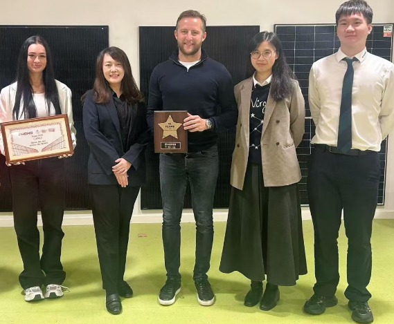 2025年9月18日,苏美达能源旗下辉伦太阳能(PHONO)与英国知名经销商WE公司举行长期合作伙伴颁奖仪式,以此致敬双方长达十五年的精诚合作与共同成长。WE公司代表与苏美达辉伦业务四部英国团队共同参与仪式。