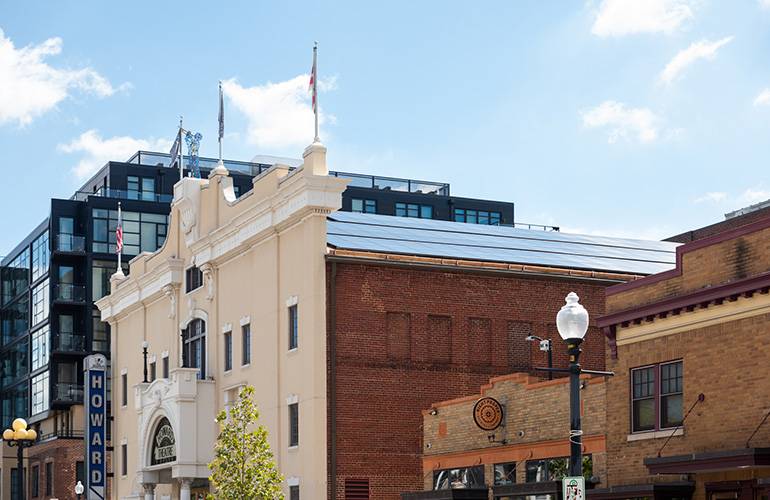 在华盛顿特区绿色银行和华盛顿特区可持续能源公用事业公司(DCSEU)的协助下,美国历史上为非裔美国人娱乐而建的最古老剧院——霍华德剧院新增了106.82千瓦的屋顶太阳能电池板和储能系统。该剧院于1974年被列入国家史迹名录。