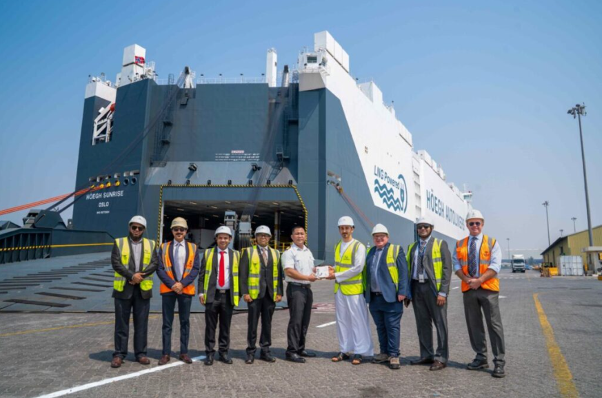 迪拜环球港务集团旗下杰贝阿里港成功接待"MV Höegh Sunrise"号汽车运输船首次靠泊。该船作为极光级系列首制船,采用零碳燃料设计,能够使用氨和甲醇等清洁能源运营,展现了汽车运输领域的新发展方向。