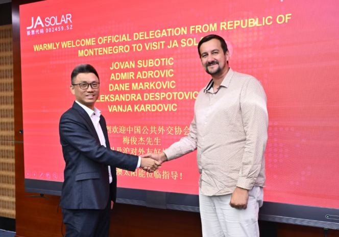 黑山共和国议员表示,黑山太阳能资源丰富,全年日照充足,发展光伏发电条件优越。目前,黑山已设定明确的能源转型目标:计划到2030年将可再生能源在全国电力结构中的占比提升至30%。通过《可再生能源使用法》等政策支持,政府致力于实现全民清洁能源覆盖,持续推进光伏及其他低碳产业发展,逐步降低对化石能源的依赖,提升能源自主性与安全性。他表示,期待与晶澳科技这样的行业领军企业加强合作,共同推动黑山光伏应用的快速拓展。