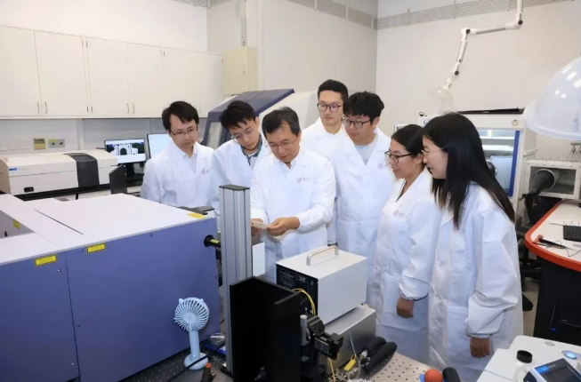 ▲张强(左三)指导学生。图片来源:清华大学