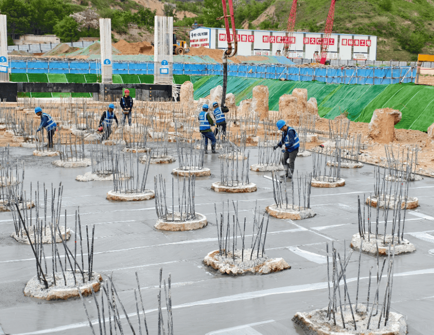 铜川压气储能项目主厂房膨胀发电机基座底板垫层开始浇筑