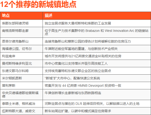 候选地点类型多样,包括绿地定居点、城市扩展项目和主要重建区域,范围从伦敦东部的泰晤士米德一直延伸到东德文郡的马尔科姆。每个新城镇都将规划超过10,000套住房,其中经济适用房占比至少40%,社会租赁住房则占一半。工作组强调,需建立负责任的交付机构,确保项目长期确定性,并围绕经济增长和基础设施来精心塑造社区。