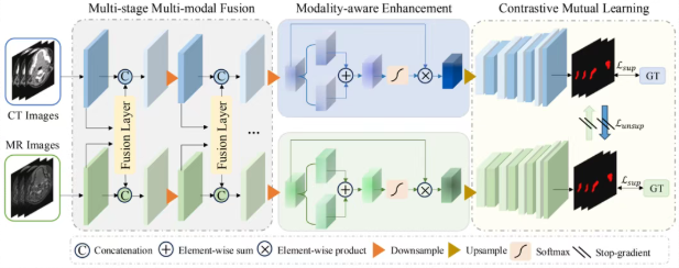 在医学影像分析领域,精准的病灶分割对疾病诊断、治疗规划和疗效评估至关重要。然而,高质量标注数据的稀缺严重限制了分割方法的实际应用。尽管半监督学习能够缓解标注成本高的问题,但在面对复杂病灶、模糊边界等挑战时仍难以满足临床精度需求。此外,计算机断层扫描(CT)、磁共振成像(MRI)等多模态影像虽然能够提供丰富的互补信息,如何在半监督框架下有效融合多模态特征并充分利用大量未标注数据,仍是当前亟待解决的关键难题。