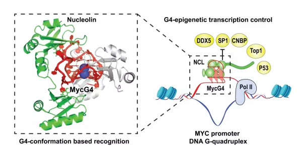 MYC癌基因在癌症的发生和进展中扮演重要角色,它是驱动细胞生长、增殖和代谢的"主调控因子"。当c-MYC基因与核仁素(nucleolin)蛋白结合时,该基因就无法被复制,从而阻断了不受控的细胞分裂中的一个必要步骤。