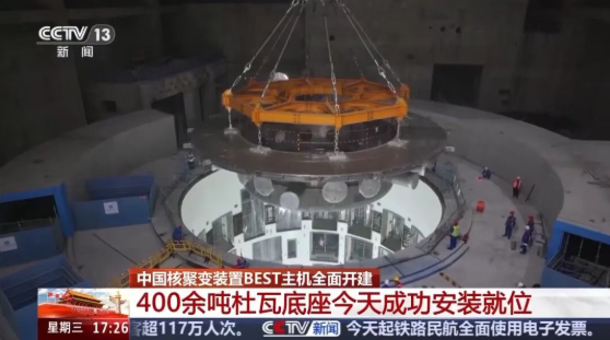 中国科学院合肥物质院等离子体物理研究所副研究员 黄雄一:杜瓦底座安装完成之后,就标志着大部件的安装就要开始了,随后相应的像磁体、真空室等重要的核心部件就要安装在杜瓦底座上,最终我们会把杜瓦底座封闭起来,形成一个真空环境来确保托卡马克的运行。
