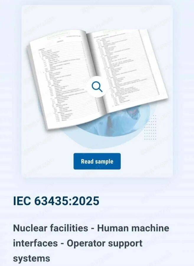 近日,由中广核工程有限公司设计院主导编制的国际电工委员会(简称“IEC”)标准IEC 63435《Nuclear facilities -Human machine interfaces -Operator support system》(核设施—人机接口—操作员支持系统)正式发布。