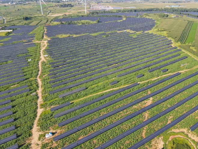 辽宁阜新市建设的农光互补光伏电站通过板上发电、板下种植的模式实现土地资源综合利用。这座光伏电站装机容量100兆瓦,于2021年12月实现并网发电,是当地推进能源结构调整的示范项目。