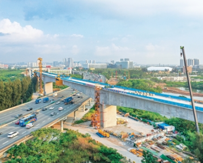 现场施工人员正按计划推进该高速铁路桥梁的合龙前准备工作。深江高铁全线开通后,将与既有的广深港高铁实现互联互通,增强大湾区城市间的交通联系。