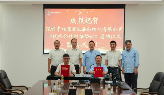 10月10日,海南核电有限公司与深圳中核集团有限公司在海南核电现场签订《战略合作框架协议》。中核集团(广东)市场开发部主任李志煌,海南核电党委书记、董事长魏智刚,深圳中核集团党委书记、董事长陈钢出席座谈会。