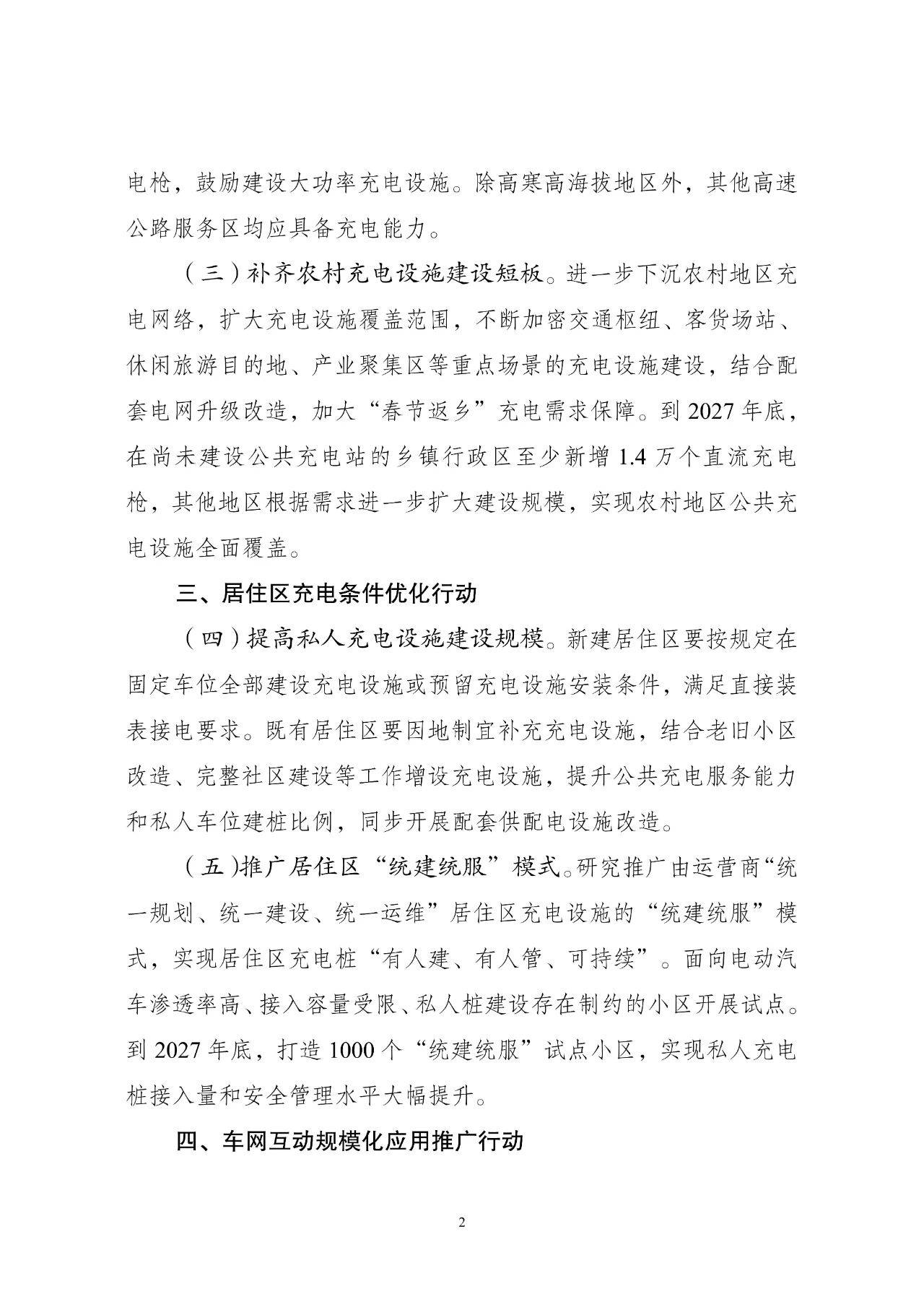 为落实《提振消费专项行动方案》有关要求,加大力度完善电动汽车充电设施服务网络,提升消费品质,促进电动汽车更大范围内购置使用,国家发展改革委等部门研究制定了《电动汽车充电设施服务能力“三年倍增”行动方案(2025—2027年)》,现印发给你们,请认真组织落实。