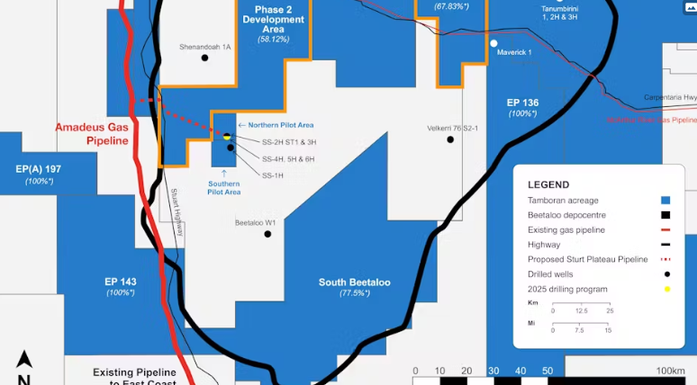 根据开发规划,Tamboran将于2025年第四季度启动SS-4H井的压裂作业,该井设计包含60个压裂段,覆盖全部10,000英尺水平段。完成30天流量测试后,该井将关闭以备未来天然气销售。其余两口井及经过加固的SS-3H井计划于2026年上半年进行压裂。这些页岩气开发井所产天然气将通过北领地天然气管网进行销售,首批天然气供应预计在2026年中期实现,为澳大利亚天然气市场提供新的资源补充。