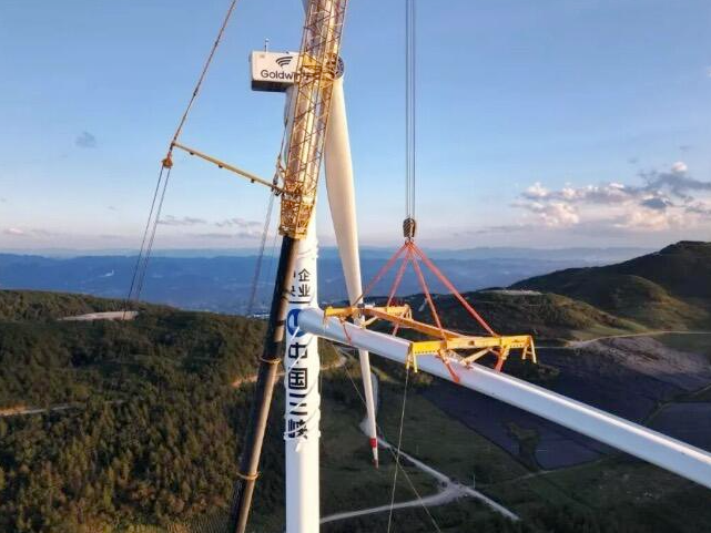 近日,湖北利川齐岳山巅传来喜讯:随着第三支99米长的叶片在百米高空与轮毂精准对接,三峡集团所属湖北能源齐岳山风电场“以大代小”改造项目首台风机吊装顺利完成。这标志着湖北省首个国家级风电改造示范项目实现重要突破。
